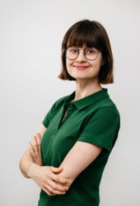 Jest absolwentką szkoły muzycznej I stopnia oraz kursu gordonowskiego (2022), co pozwala jej wrażliwie wykorzystywać elementy muzyczne w pracy z najmłodszymi. Kontakt z dzieckiem i rodzicem, obserwowanie rozwoju oraz radość płynąca z terapii są dla niej kluczowymi wyznacznikami dobrej pracy.